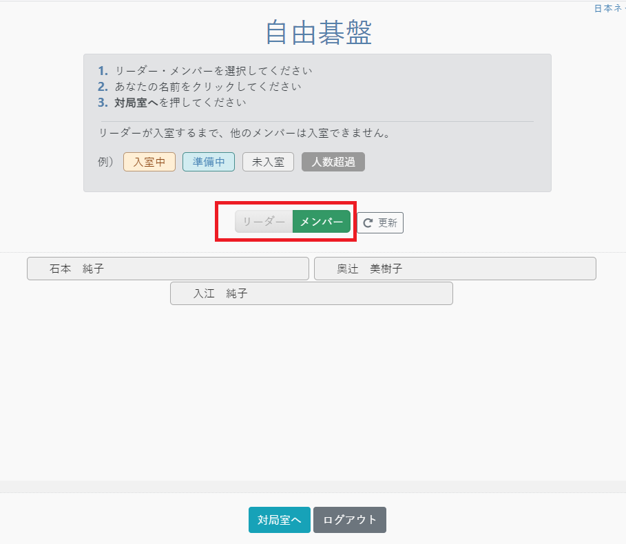 手合いや対局者の設定等は、全て本日のリーダーが行います。